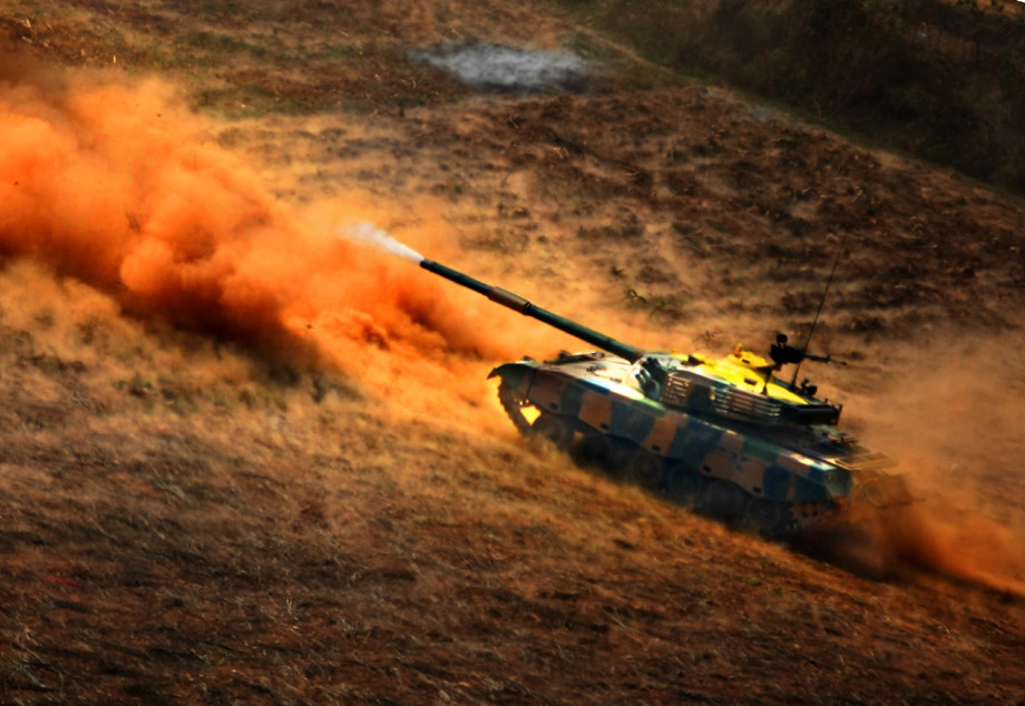 解放军“前锋-二00九A”演习,二十二日在济南军区某合同战术训练基地进行陆空联合火力打击实兵实弹演练。中新社发 宋吉河 摄