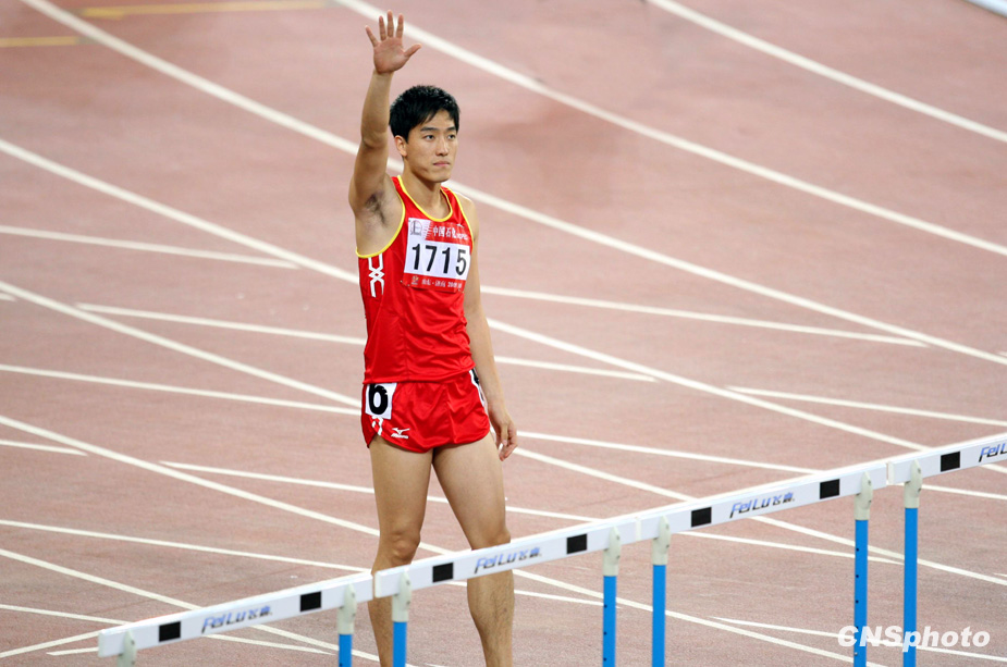 10月24日晚,全运会110米栏预赛在济南奥体中心举行,“飞人”刘翔以13秒75成绩轻松晋级决赛。来源:中国新闻网