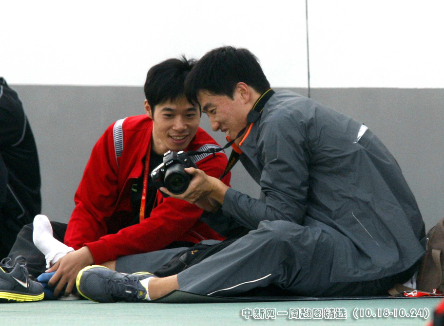 10月22日下午,“飞人”刘翔亮相济南奥体中心田径训练场,训练间隙手拿相机,客串摄影记者。中新社发 张宇 摄。>>点击观看详细内容