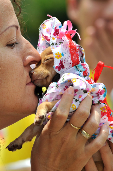 图为哥伦比亚家庭宠物节上,穿着“奇装异服”的宠物。