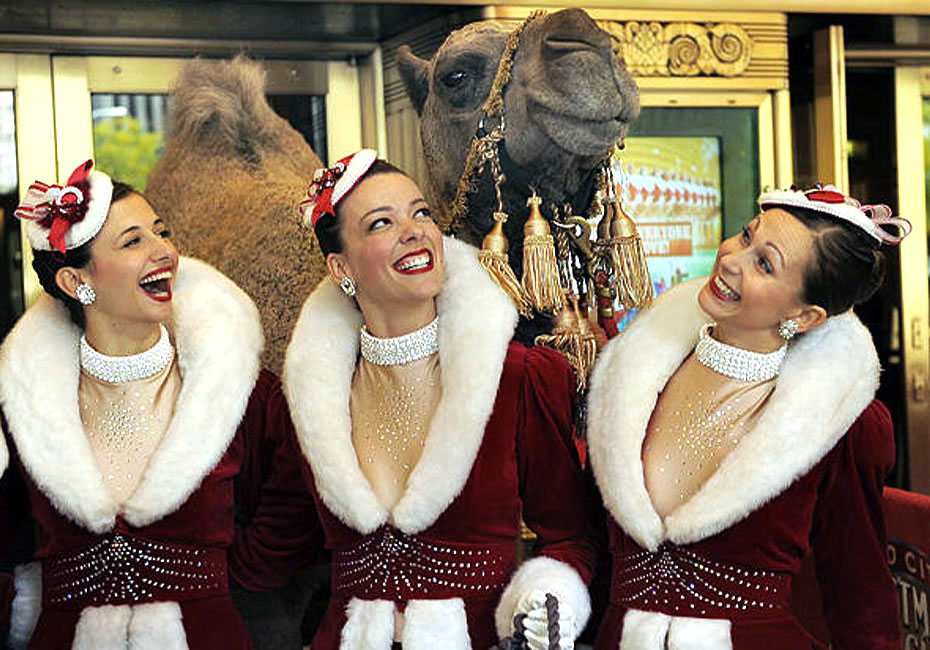 10月29日,火箭女郎舞蹈团的姑娘们在美国纽约广播城音乐厅与众多动物明星合影,准备在圣诞秀上亮相。图片来源:中国新闻网