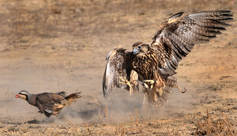 10月30日,在吉尔吉斯斯坦Bokonbayevo传统的狩猎节上,一只捕猎鸟在追猎物。图片来源:中国新闻网