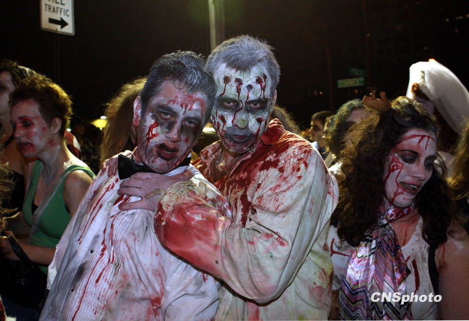10月31日是西方的“万圣节”,世界各地的群众穿着奇异的服饰、打扮鬼魅的造型迎接“鬼节”的到来。图片来源:中国新闻网