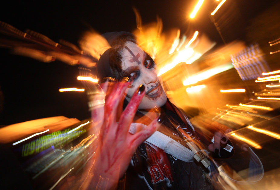 10月31日是西方的“万圣节”,世界各地的群众穿着奇异的服饰、打扮鬼魅的造型迎接“鬼节”的到来。图片来源:中国新闻网