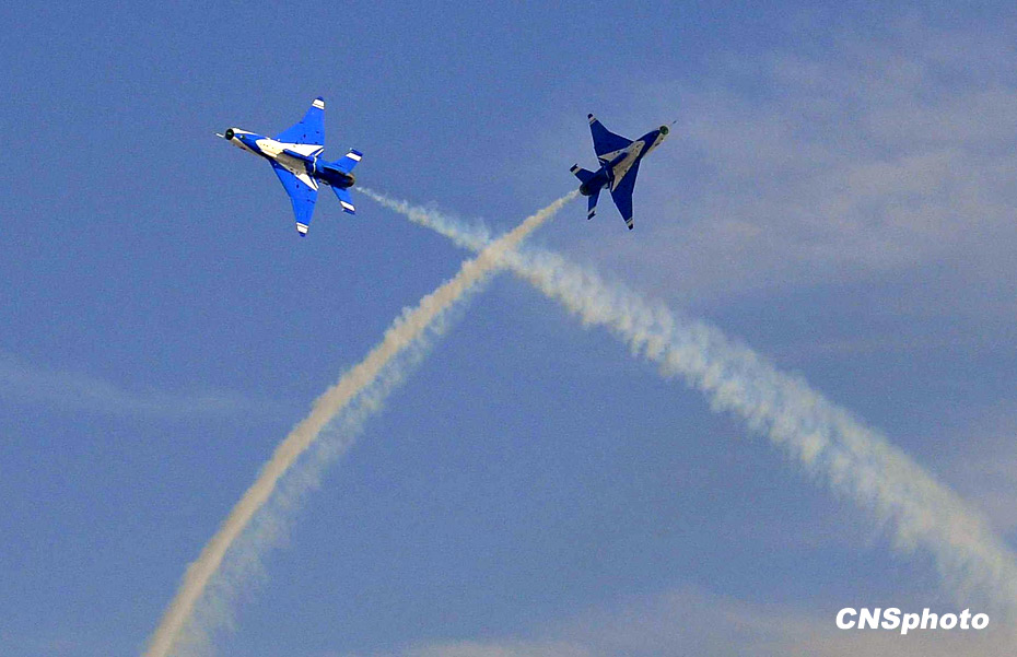图为歼七表演的空中芭蕾。中新社发 潘旭临 摄