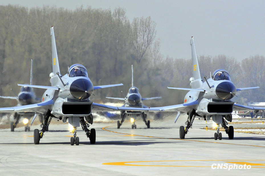 图为歼十战机参加预演。中新社发 潘旭临 摄