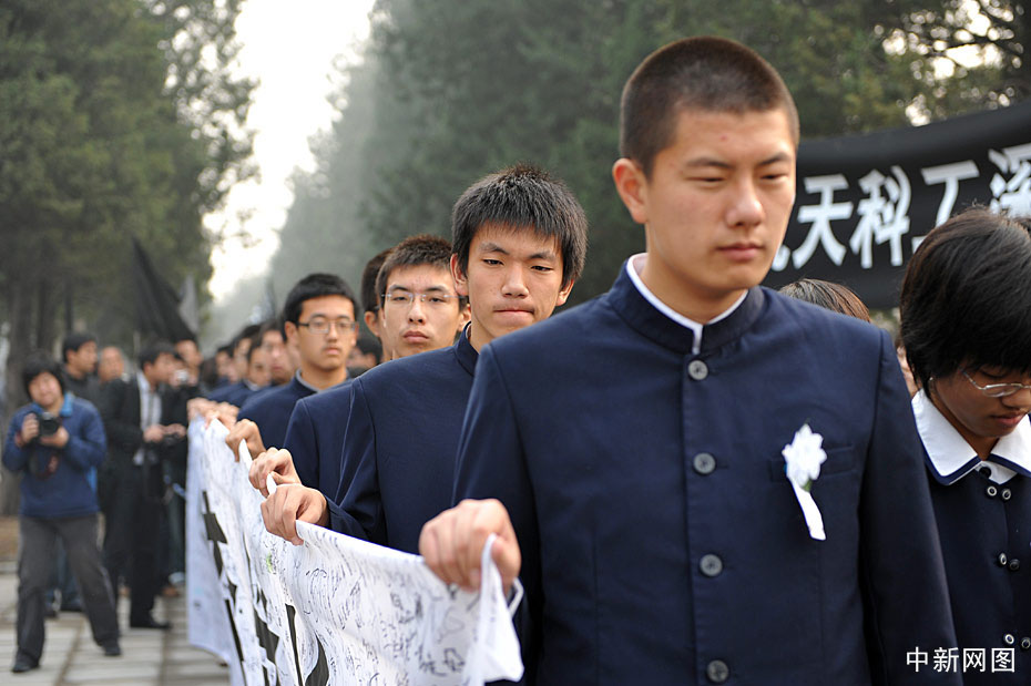 11月6日,“中国航天之父”钱学森的追悼会在北京八宝山举行。各界民众自发赶来为钱老送行。图片来源:中国新闻网