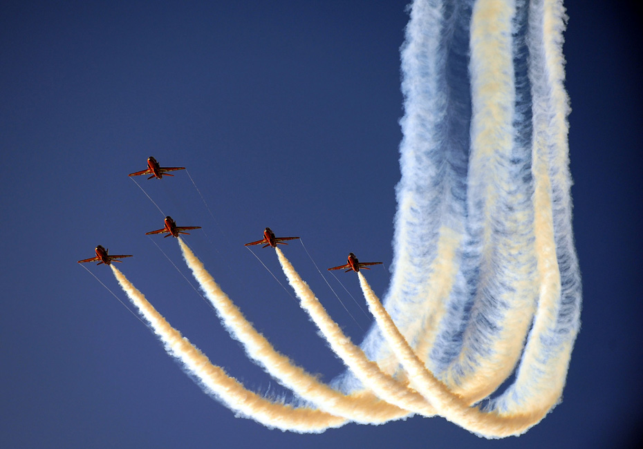 11月12日,英国红箭特技飞行表演队迎来了第一位女性飞行员中尉基丝·摩尔,她将与其他成员一道驾驶红色喷气机进行空军飞行表演。图片来源:中国新闻网
