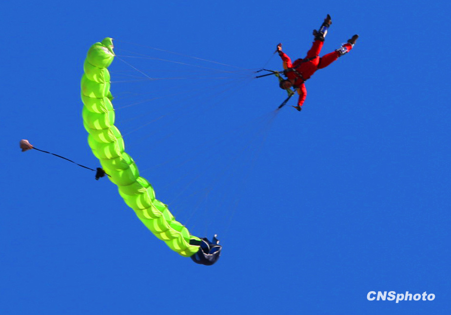 庆祝中国人民解放军空军成立60周年飞行跳伞表演,11月15日上午在北京沙河机场举行。