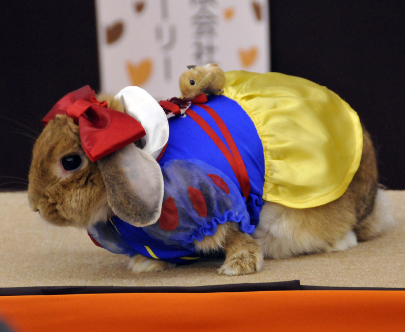 11月15日,在日本举行了一场兔子时装大赛,众多爱好者把自己的兔子打扮的时髦靓丽前来参赛。图片来源:中国新闻网