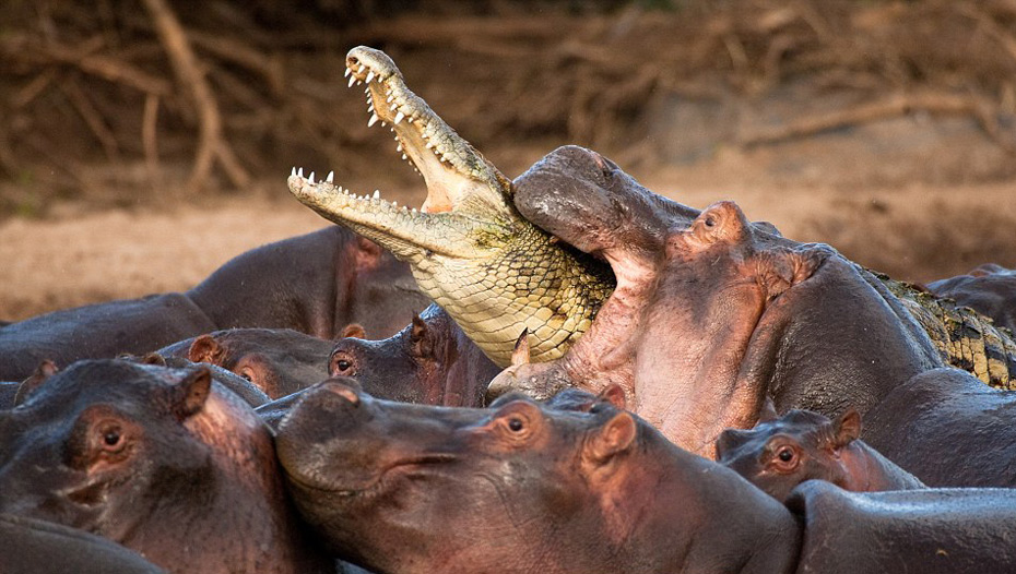 蠢鳄鱼混入河马群 引众怒被活活咬死