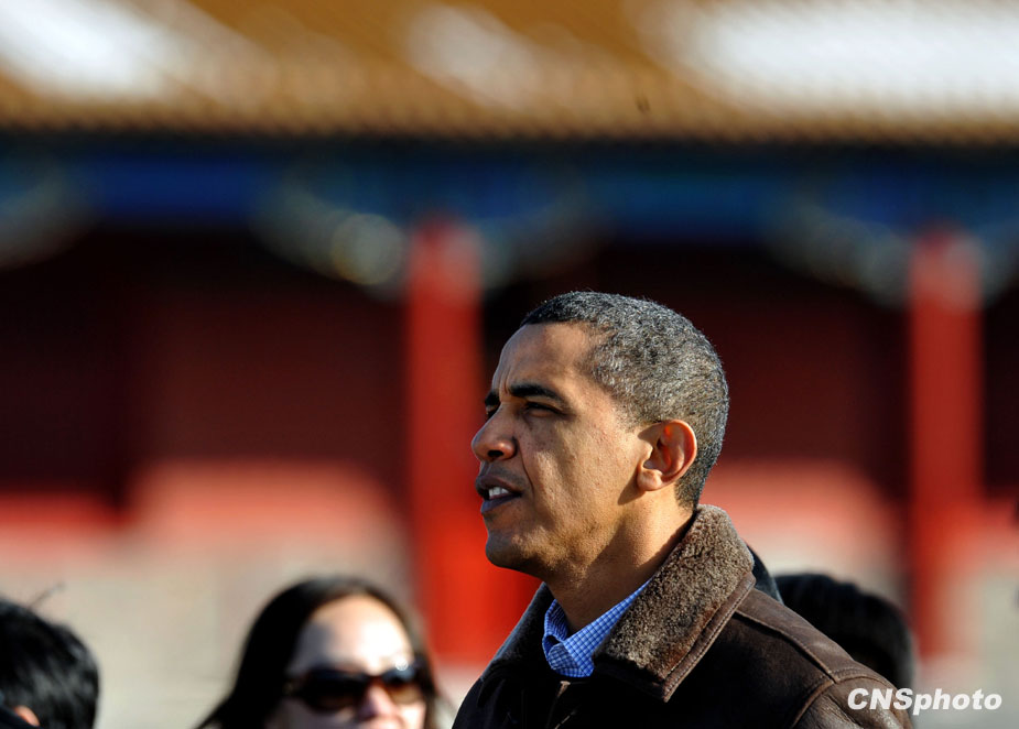 11月17日,正在中国进行国事访问的美国总统奥巴马一行参观北京故宫。图片来源:中国新闻网