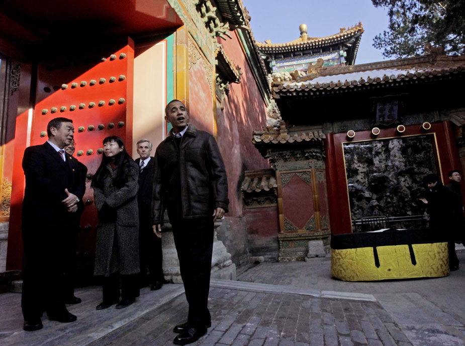 11月17日,正在中国进行国事访问的美国总统奥巴马一行参观北京故宫。图片来源:中国新闻网