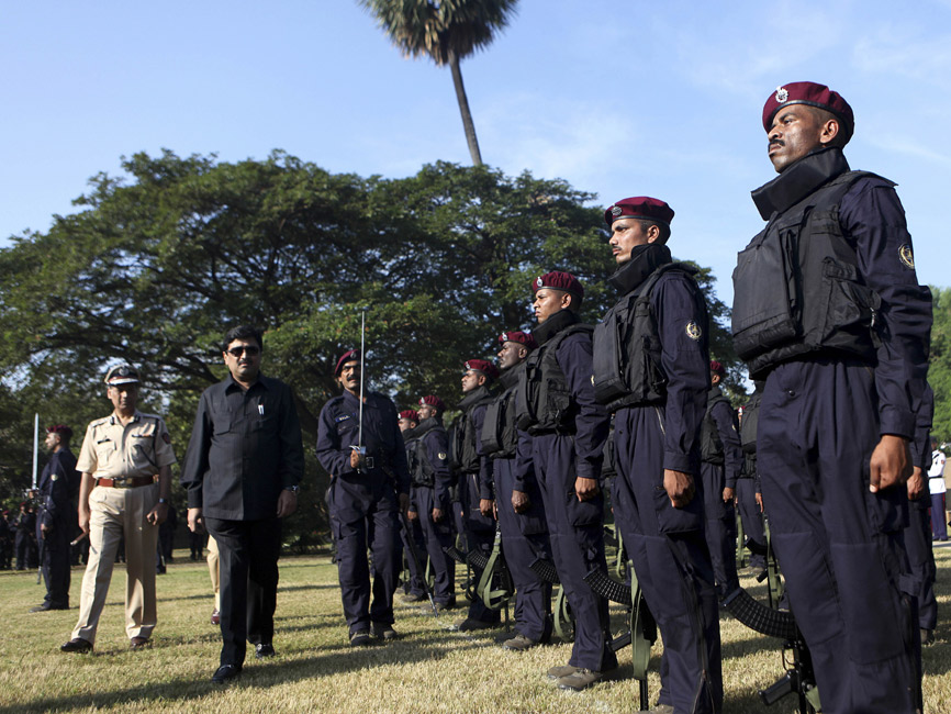 11月24日,印度新成立的一支名为“FORCE ONE”的精英特种部队在孟买接受检阅。图片来源:中国新闻网
