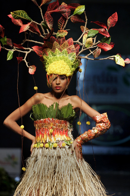 11月26日,哥伦比亚举行了一场时装秀,靓模身着颇具热带丛林风格的服饰,尽显火辣、神秘的南美特质。图片来源:中国新闻网