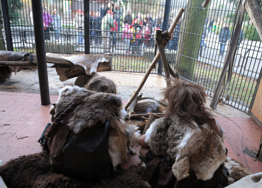 11月27日,波兰首都华沙动物园里,一男一女两个志愿者扮成原始洞穴人向参观者进行展示。该动物园想通过这项为期一周的活动,提醒参观者注意人类也是动物界的一部分。