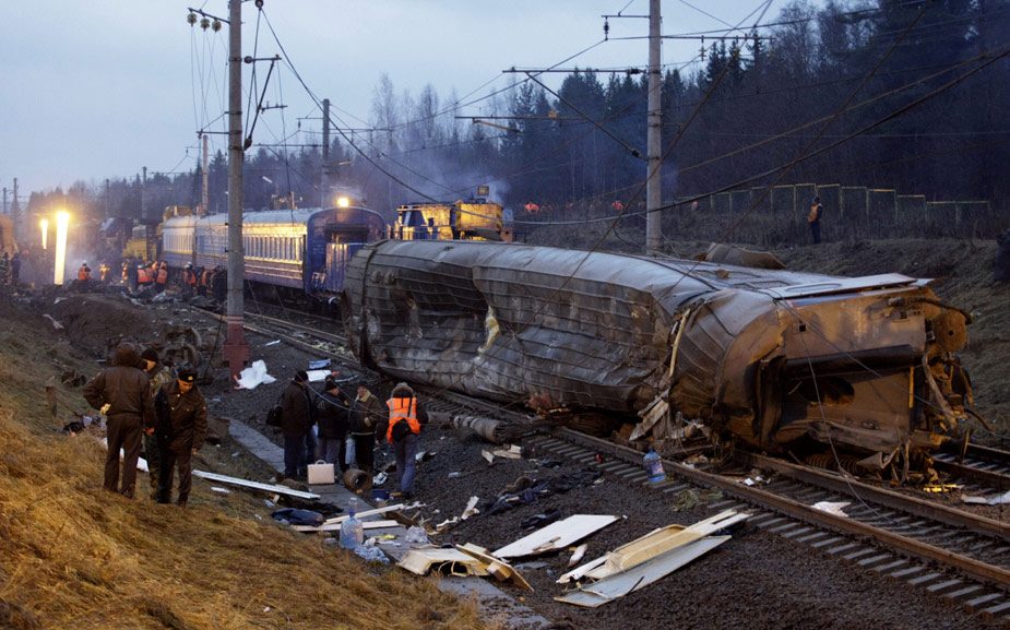 莫斯科时间27日21点34分,由莫斯科开往圣彼得堡的166次“涅瓦特快号”客运列车的几节车厢发生脱轨事故。图片来源:中国新闻网