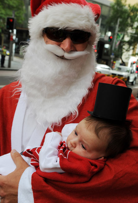 11月29日,在澳大利亚悉尼市中心,大约1800名“圣诞老人”参加群跑活动,迎接今年圣诞节的到来。