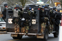 11月29日,美国4名警察在华盛顿州空军基地附近一间咖啡馆被两名枪手枪击,4人当场死亡。美国军方派遣反恐特警小组展开大规模追查。图片来源:中国新闻网