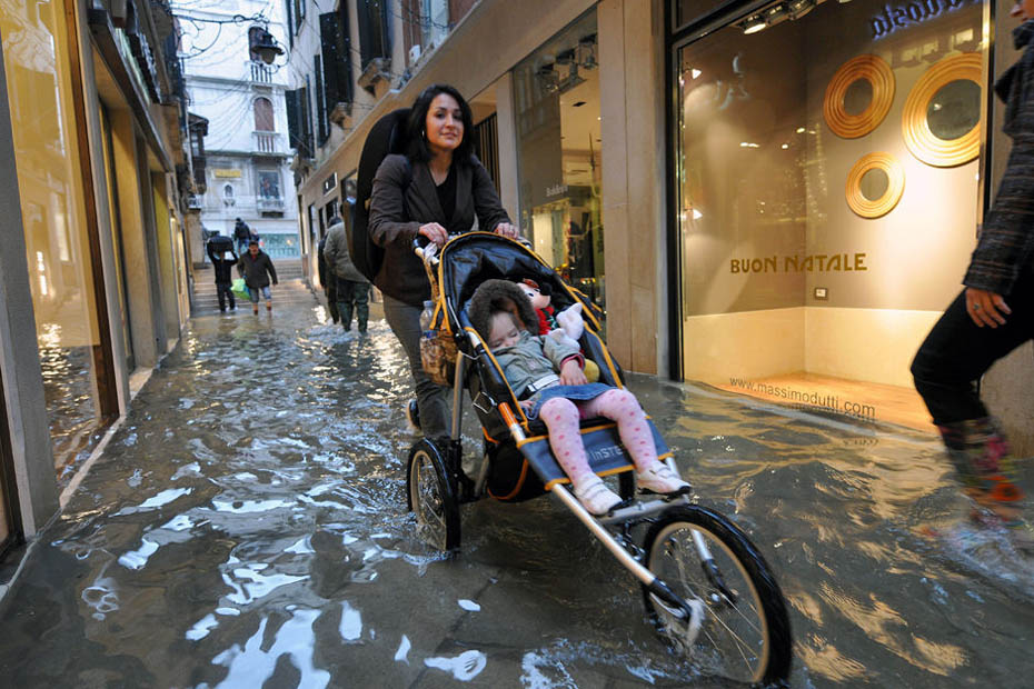 11月30日,意大利水城威尼斯受潮汐和一股强烈的热带风暴影响再次被洪水淹没,部分地区最高水位达到1.31米。图片来源:中国新闻网