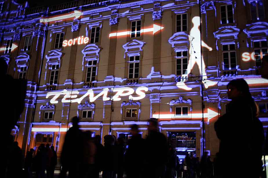 12月5日,在法国里昂,人们欣赏灯光表演。第11届灯节到来之际,里昂城被五彩变幻的灯光装饰。图片来源:中国新闻网