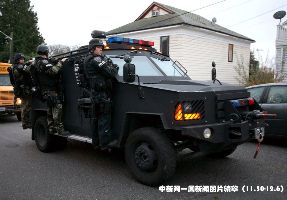 11月29日,美国4名警察在华盛顿州空军基地附近一间咖啡馆被两名枪手枪击,4人当场死亡。美国军方派遣反恐特警小组展开大规模追查。图片来源:中国新闻网