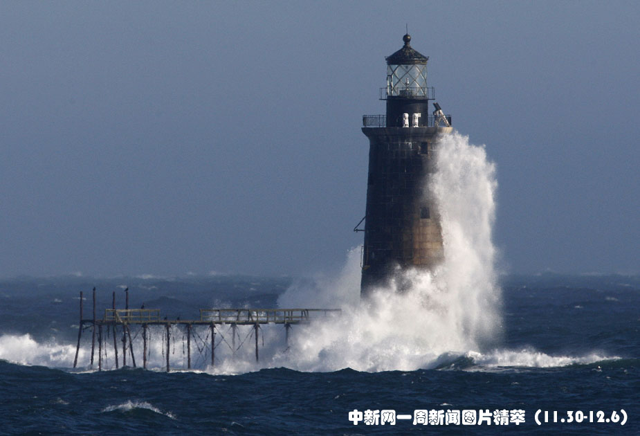 12月3日,每小时50英里的大风袭击了美国波特兰的港口。图片来源:中国新闻网