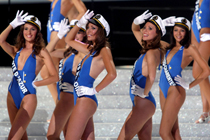 最大规模比基尼游行:11月7日,300余名南非女性着比基尼沿着梅尔罗斯门大道游行了1690米,在打破吉尼斯世界纪录的同时提醒妇女提高防范乳腺癌的意识。图片来源:中国新闻网