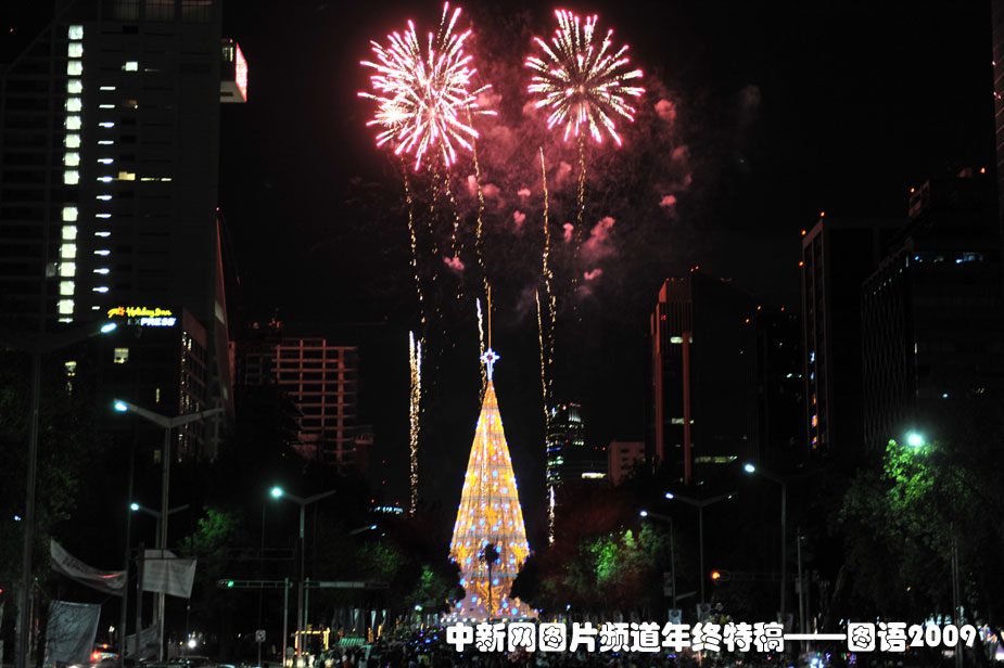 世界最高圣诞树:12月5日,墨西哥首都墨西哥城凭借一棵高110.35米、直径35米、重达330吨的圣诞树打破了世界最大圣诞树吉尼斯世界纪录。图片来源:中国新闻网