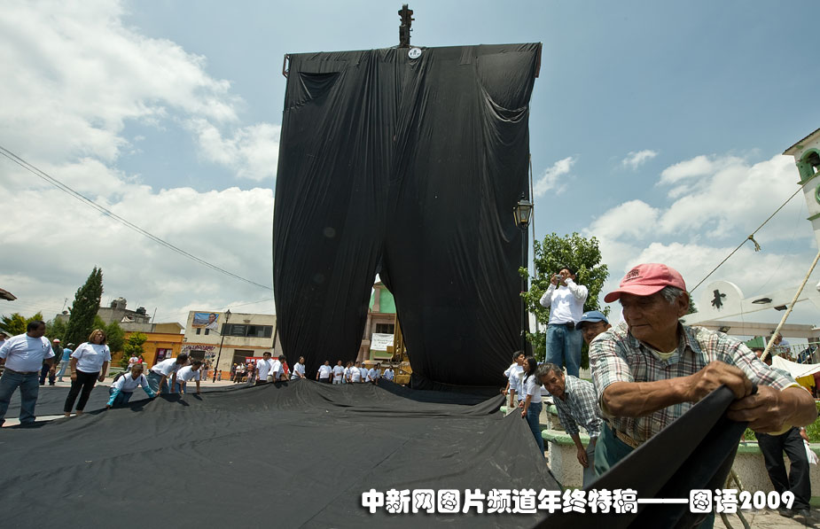 最长的裤子:6月14日,墨西哥人在墨西哥州的阿尔莫洛亚展示一条60.1米长的裤子,打破最长裤子的吉尼斯世界纪录。图片来源:中国新闻网