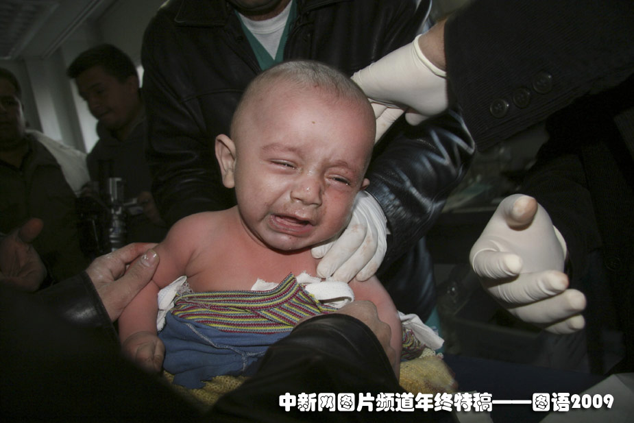 1月6日,一名饱受加沙战火的巴勒斯坦婴儿。