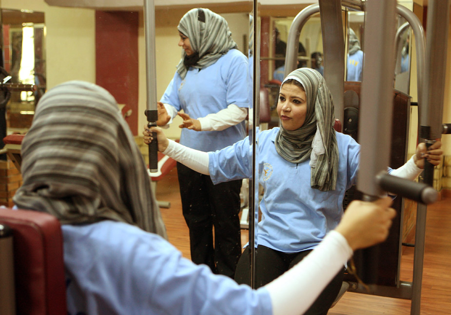 近日,埃及“女子警卫”在开罗郊区一个体育馆进行训练。她们专为有一定社会地位和名气的女性提供服务。