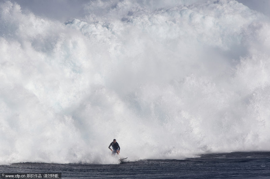 12月8日,美国夏威夷出现15米高罕见巨浪,一些勇敢的冲浪者都来到这里进行挑战。图片来源:CFP