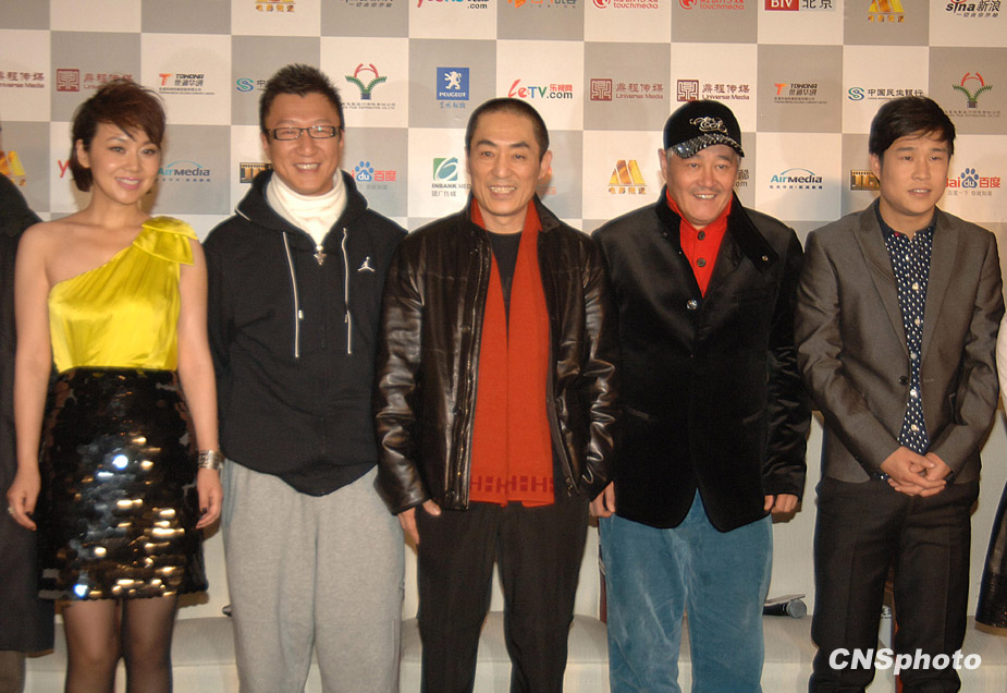 12月9日下午,张艺谋喜剧新作《三枪拍案惊奇》在京举行首映发布会,导演张艺谋、大病初愈的赵本山携孙红雷、小沈阳、闫妮、倪大洪、程野、毛毛全明星主创团队齐齐亮相。现场张艺谋、赵本山、小沈阳搞笑不断,引得爆笑连连,上演了一出戏外喜剧。赵本山首度回应了花两亿购买私人飞机一事,称还没有定下来。张艺谋表示会和“赵家班”继续深度合作,并且豪言预计未来的中国电影单部影片票房可能达到2亿美元。中新社发 李学仕 摄
