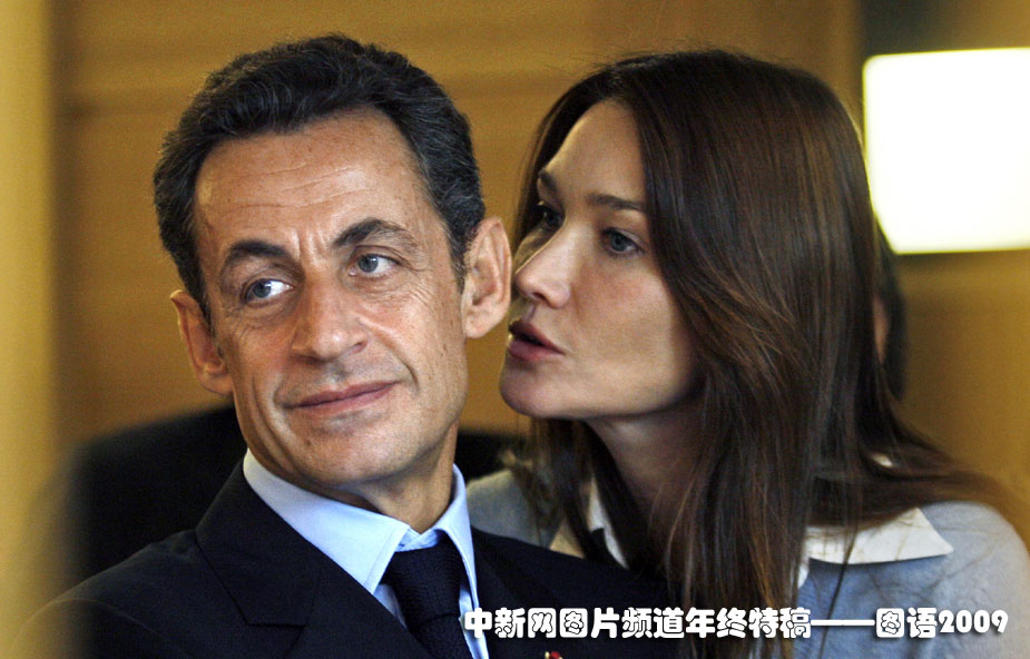 甜言蜜语:2009年11月2日,法国总统萨科奇和夫人贝鲁尼在听取医院工作人员的汇告。