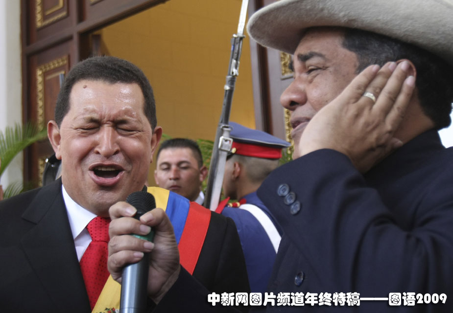 查韦斯的怒吼:2009年7月25日,委内瑞拉总统查韦斯在加拉加斯举行的一场音乐会上一放歌喉。