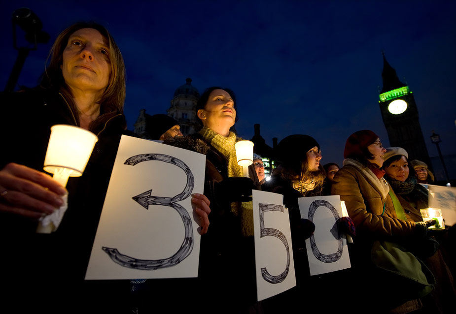 2009年12月12日,世界各地的环保人士举行各种活动助威气候大会,呼吁环保。图片来源:中国新闻网