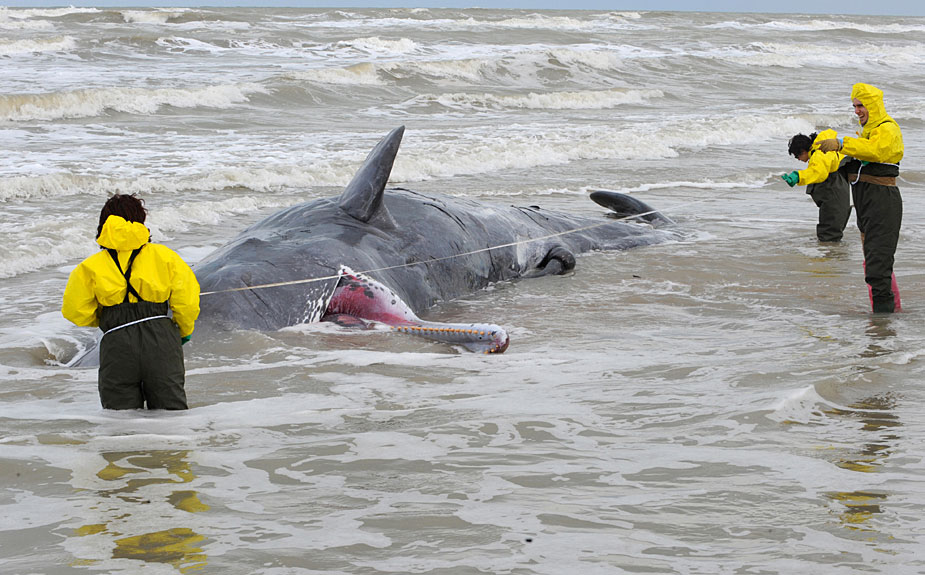 一群抹香鲸12月12日在意大利南部海滩搁浅,其中至少5头已经死亡。据称,这群抹香鲸共有9头,其中有2头经过救援已成功游回大海,目前相关人员对另外2头正在进行救援。图片来源:中国新闻网