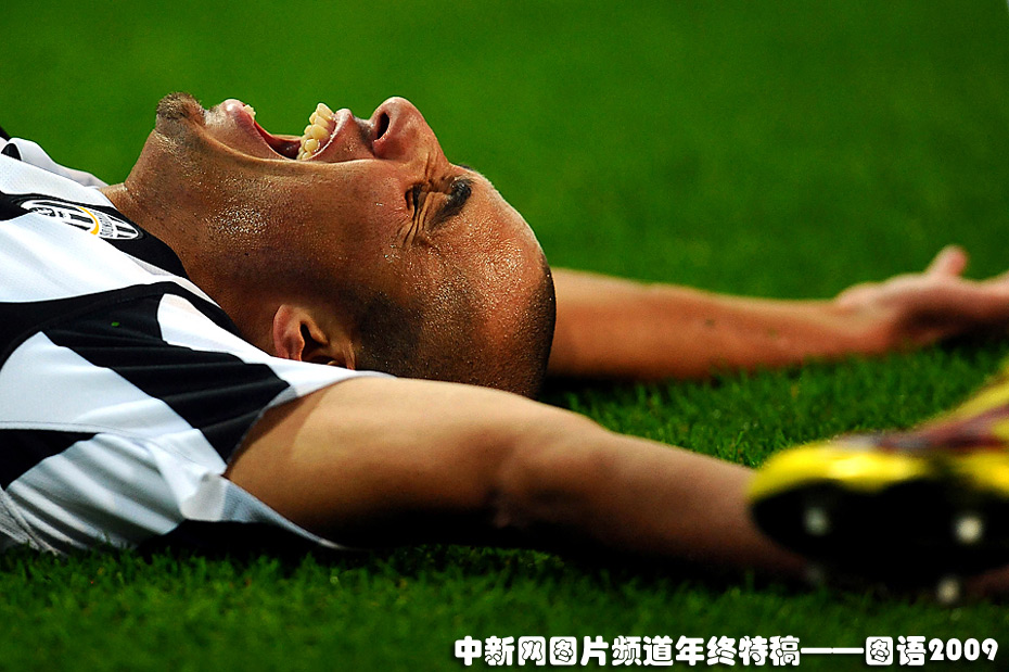 欧洲冠军杯小组赛A组的一场比赛中,意大利尤文图斯队的特雷泽盖在攻破拜仁慕尼黑队的球门后倒地庆祝。但最终拜仁队以4比1获胜。