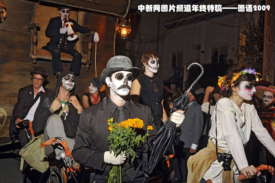 美国旧金山居民欢庆“亡灵节”——11月2日,美国旧金山居民扮成鬼怪模样庆祝“亡灵节”。“亡灵节”是拉美地区的传统节日,类似于中国的清明节。
