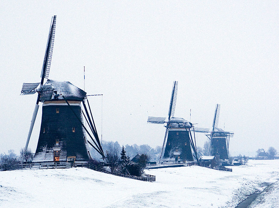12月17日,荷兰风车上积满雪花。