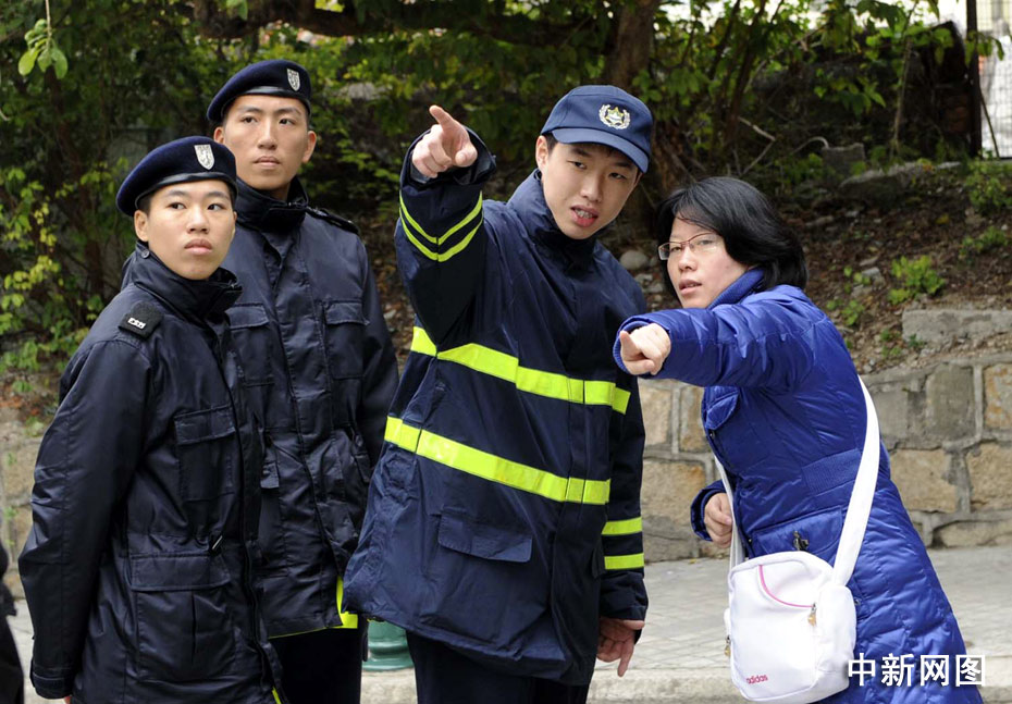 澳门凼仔警察悉心为民众答疑。中新社记者 廖攀 摄