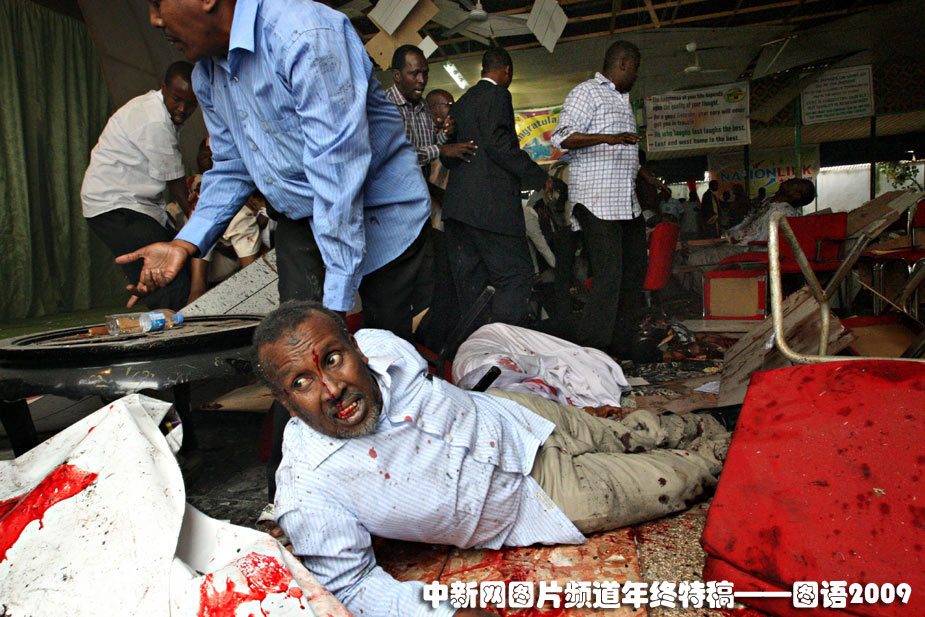 2009年12月3日,索马里首都摩加迪沙一家饭店发生自杀炸弹袭击事件,至少造成57人死亡,另有200多人受伤。