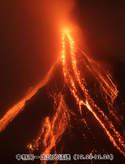 12月23日,菲律宾阿尔拜省黎加斯比市马荣火山口喷发大量岩浆。图片来源:中国新闻网>>点击观看详细内容