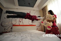 年轻人“跳床”减压