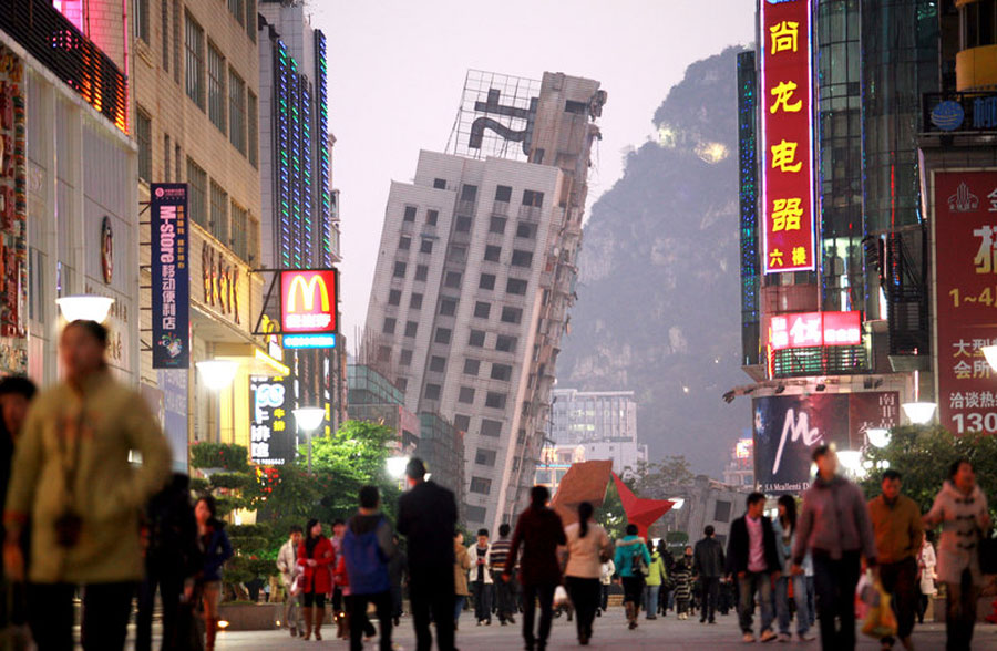 12月30日, 柳州,没有倒下的半边楼就像一座斜塔。12月30日下午,广西柳州市柳江路一高层公寓将采用爆破方式实施整体拆除。这幢高层公寓总高22层、66.4米,总建筑面积16422平方米。由于该楼体量较大,为实施有效爆破,爆破公司在前期用控制药量爆破的方式把整栋楼从中间“切开”,让一栋楼变为“两栋”,再采用控制爆破时间的方式爆破。这是迄今广西爆破拆除的最高的单体建筑。但爆破只造成了半栋建筑完全倒下,另一半在倾斜矗立着。颜篁/CFP