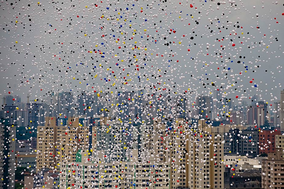 图为12月31日,巴西人在圣保罗放飞可以分解的气球,迎接新年的到来。
