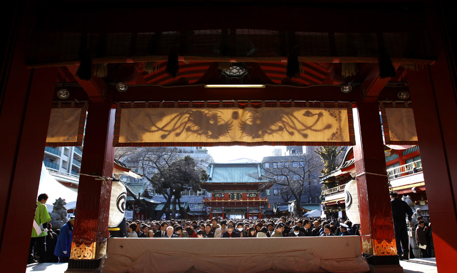 2010年1月4日,日本东京,商人聚集在神田神社里祈福,希望在新的一年里生意兴隆。当天是日本股市2010年首个交易日,市场升势延续。图片来源:中国新闻网