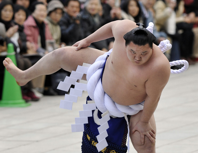 1月6日,日本举行了传统的相扑表演迎新年活动。图片来源:中国新闻网