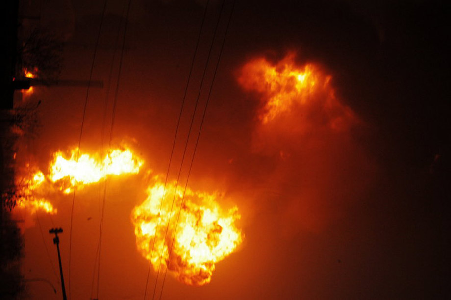 1月7日,兰州石化公司石油化工厂316罐区爆炸着火。甘肃省政府当日深夜在现场举行新闻发布会说,事故造成1人重伤、5人轻伤、9人留院观察、5人失踪。 图为爆炸现场。于永昭/CFP